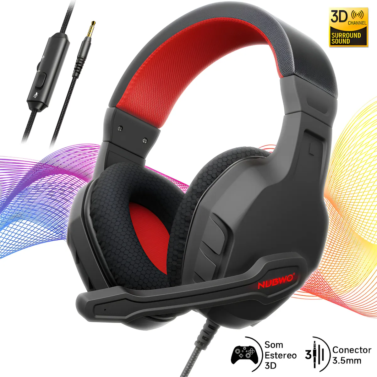Headset Gamer Nubwo N7 Over-Ear Som Surround 7.1 com Microfone e Cancelamento de Ruído |