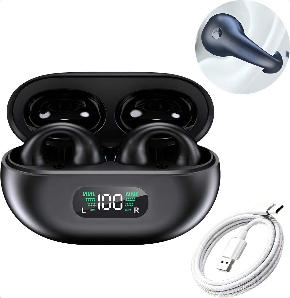 Som estéreo de nível HiFi, IPX5 à prova d’água, Confortável, condução óssea, indolor quando usado por muito tempo e difícil de agitar quando usado Chip Bluetooth 5.3 2 MB / s, 24 horas de bateria ultralonga, capacidade da bateria de 500mAh, combinado com o compartimento de carregamento, pode durar até 480 horas em standby.