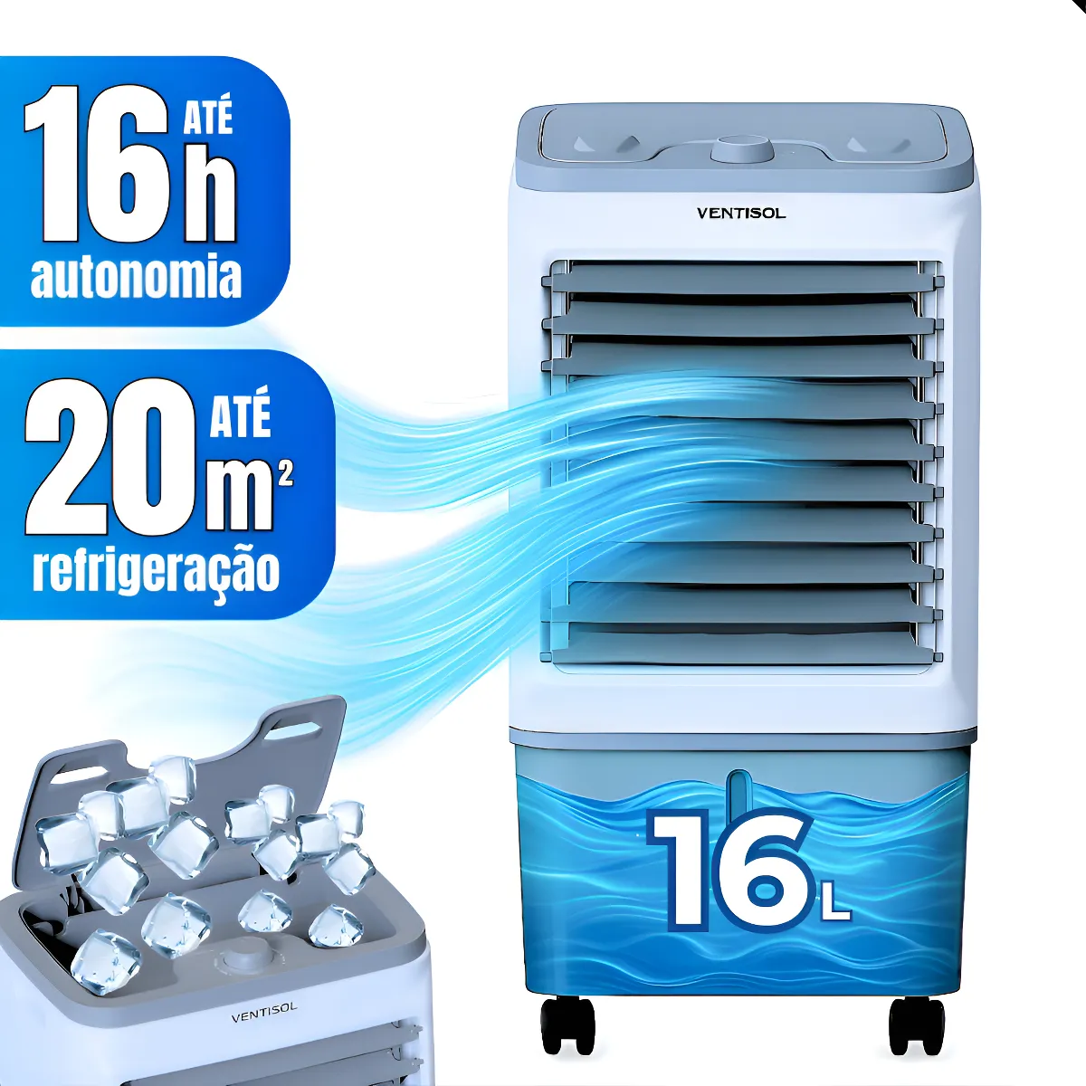 Descubra o conforto e a versatilidade do Climatizador Ventisol 5 em 1, um aparelho que transforma qualquer ambiente em um espaço agradável e saudável. Com suas cinco funções integradas, ele ventila, climatiza, umidifica, filtra e circula o ar, garantindo um ambiente sempre fresco, limpo e com mais conforto e saúde. Equipado com um reservatório de 16 litros, permite a adição de gelo para intensificar o resfriamento, enquanto suas aletas com regulagem vertical manual asseguram uma distribuição eficiente do ar. O filtro evaporativo tipo colmeia proporciona um ar puro e saudável, ideal para quem busca qualidade de vida.