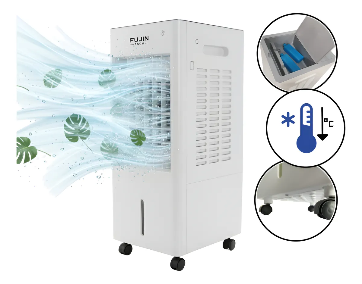 Ideal para todos os tipos de espaços, fácil de usar e instalar. O climatizador portátil ajuda você a conseguir a temperatura certa. Melhora a qualidade do ar A função de umidificação combate o ressecamento provocado no ambiente pelo próprio climatizador, melhorando a circulação do ar durante o uso. Purifica o ar Com esta função, o climatizador portátil não só refresca e atinge a temperatura ideal, mas por meio de sistemas de filtragem purifica-o, eliminando todos os tipos de partículas encontradas no ar.