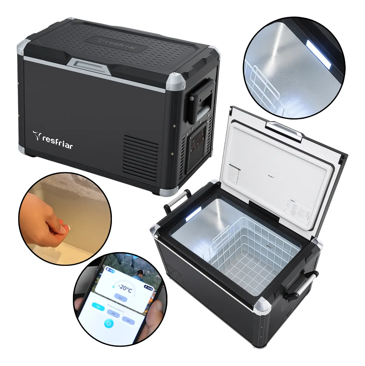 Conectividade Wi-Fi para controle remoto via smartphone.